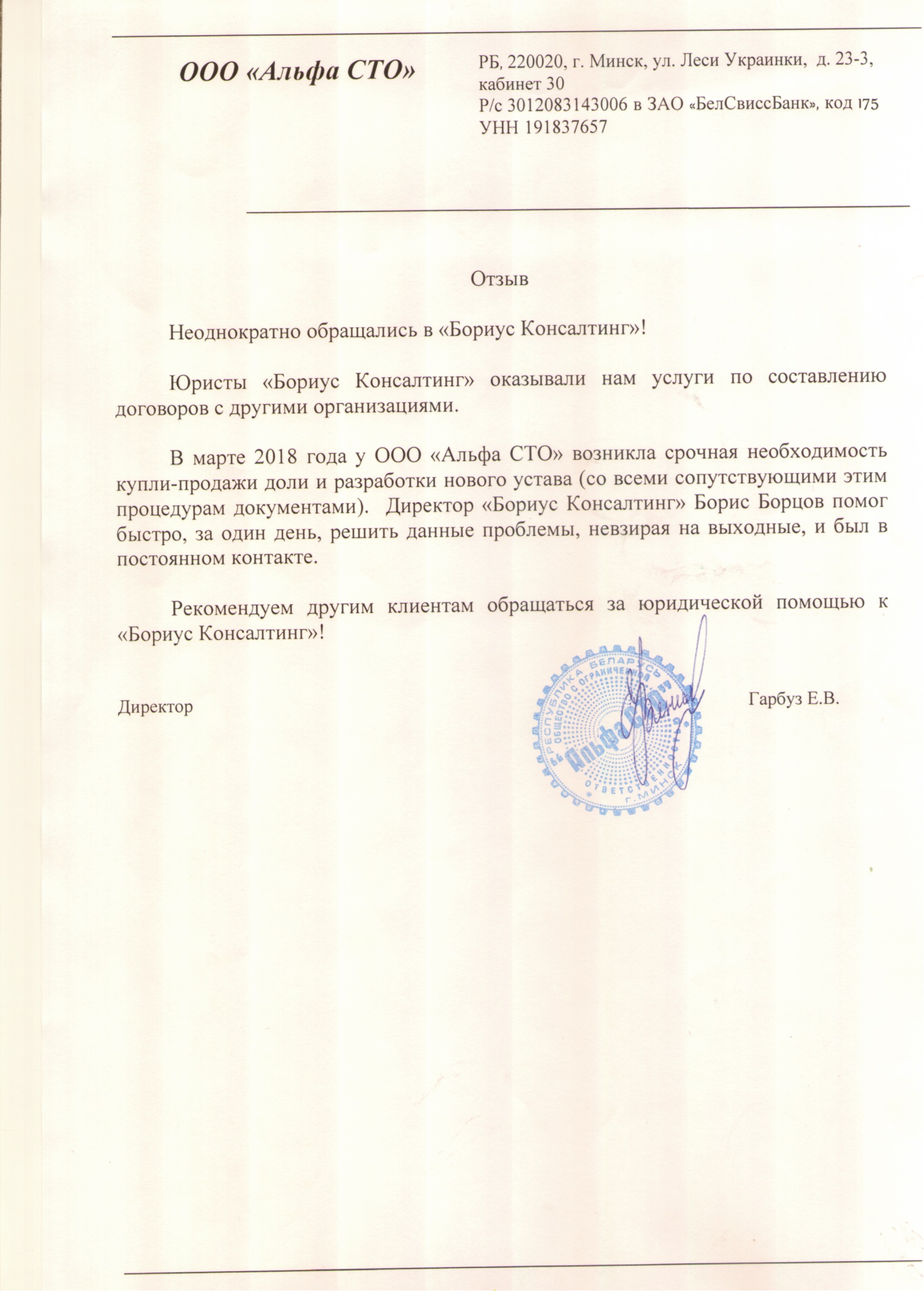 LLC "Alpha STO" about our work on the sale and purchase of shares in a short time and long-term cooperation